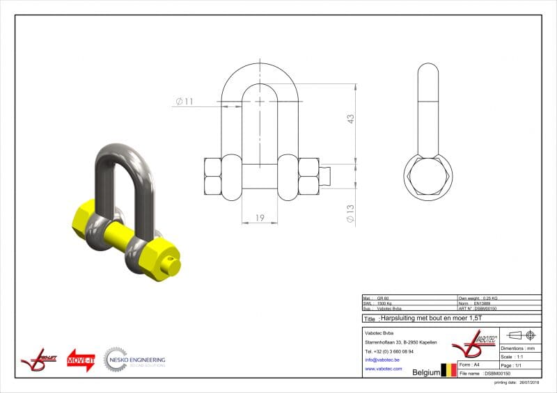 DEE sluiting met bout en moer worden meestal gebruikt voor permanente hijssystemen. (ook wel shackle genoemd). Onze harpsluitingen zijn vervaardigd uit thermisch verzinkt, hoogwaardig, niet verouderbaar staal. De bout en moer worden afgescheiden door een opvallende kleur. Een DEE sluiting heeft het voordeel smaller te zijn in de buik wanneer bijvoorbeeld inbouwbeperkingen zich opwerpen. Onze DEE en harpsluitingen zijn verkrijgbaar in twee verschillende uitvoeringen, namelijk met borstbout of bout en moer. Met borstbout gebruikt u de DEE of harp NOOIT permanent. Wij denken bijvoorbeeld aan een manbak, hier gebruikt u ALTIJD een vergrendelbare DEE sluiting of harpsluiting. Dit wil zeggen Harp of DEE, bout moer splitpen.