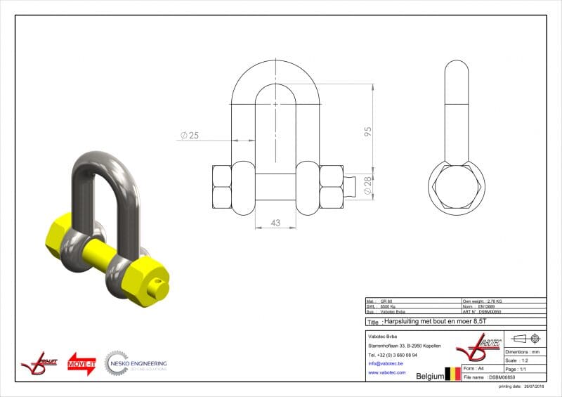 DEE sluiting met bout en moer worden meestal gebruikt voor permanente hijssystemen. (ook wel shackle genoemd). Onze harpsluitingen zijn vervaardigd uit thermisch verzinkt, hoogwaardig, niet verouderbaar staal. De bout en moer worden afgescheiden door een opvallende kleur. Een DEE sluiting heeft het voordeel smaller te zijn in de buik wanneer bijvoorbeeld inbouwbeperkingen zich opwerpen. Onze DEE en harpsluitingen zijn verkrijgbaar in twee verschillende uitvoeringen, namelijk met borstbout of bout en moer. Met borstbout gebruikt u de DEE of harp NOOIT permanent. Wij denken bijvoorbeeld aan een manbak, hier gebruikt u ALTIJD een vergrendelbare DEE sluiting of harpsluiting. Dit wil zeggen Harp of DEE, bout moer splitpen.