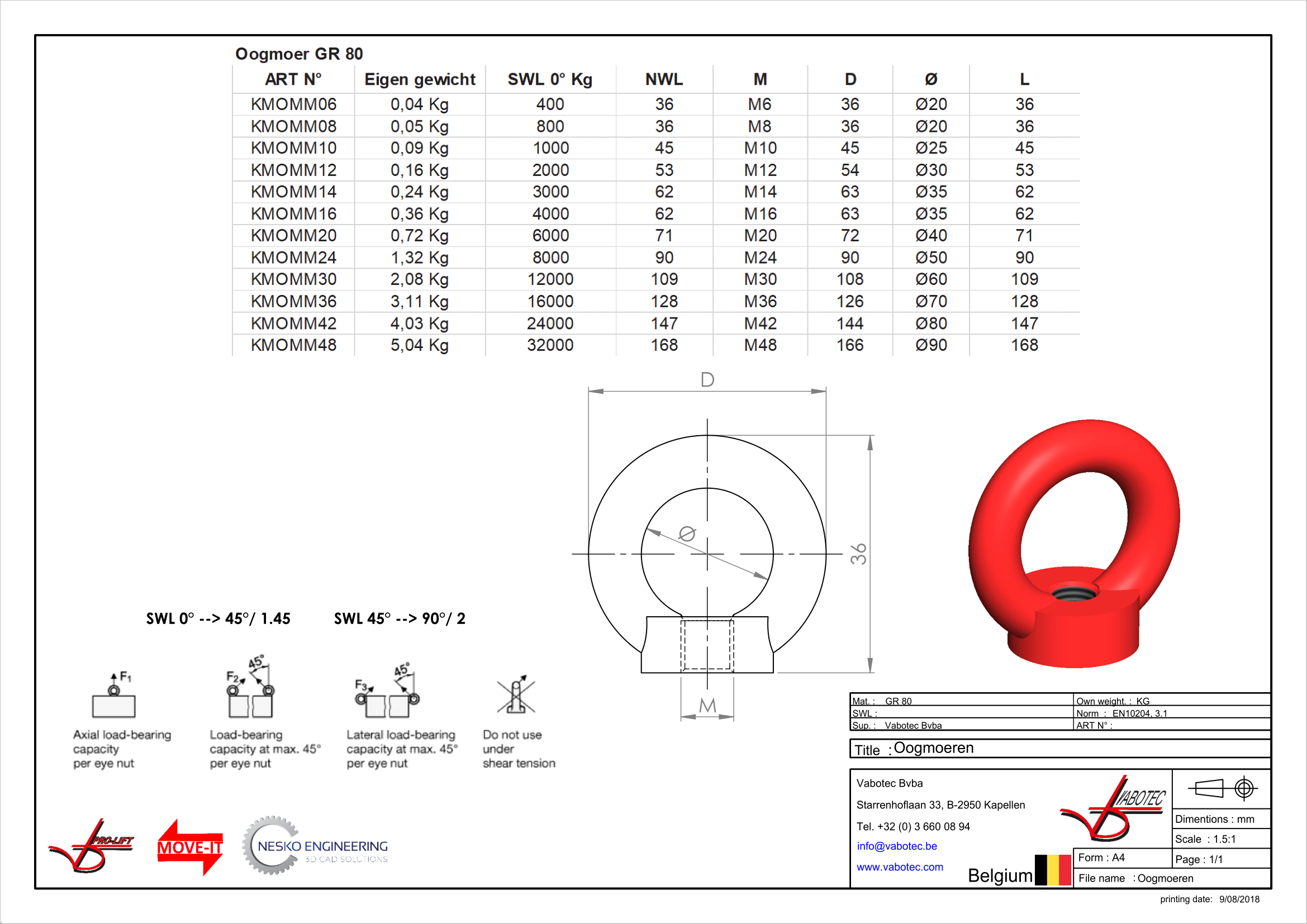 Een belangrijk voordeel van oogmoeren is dat ze eenvoudig met de hand kunnen worden vastgedraaid dankzij de inwendige draad, zonder dat er gereedschap nodig is. Dit maakt ze gebruiksvriendelijk en snel in te zetten. We bieden oogmoeren in vrijwel alle metrische maten tot M48 aan, waardoor er voor elke toepassing een geschikte maat beschikbaar is.