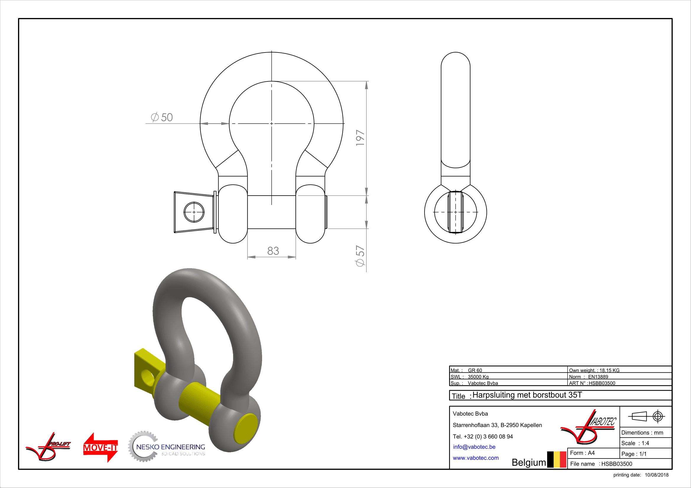 | BESCHRIJVING | Veilige werklast (SWL): | 35000 |